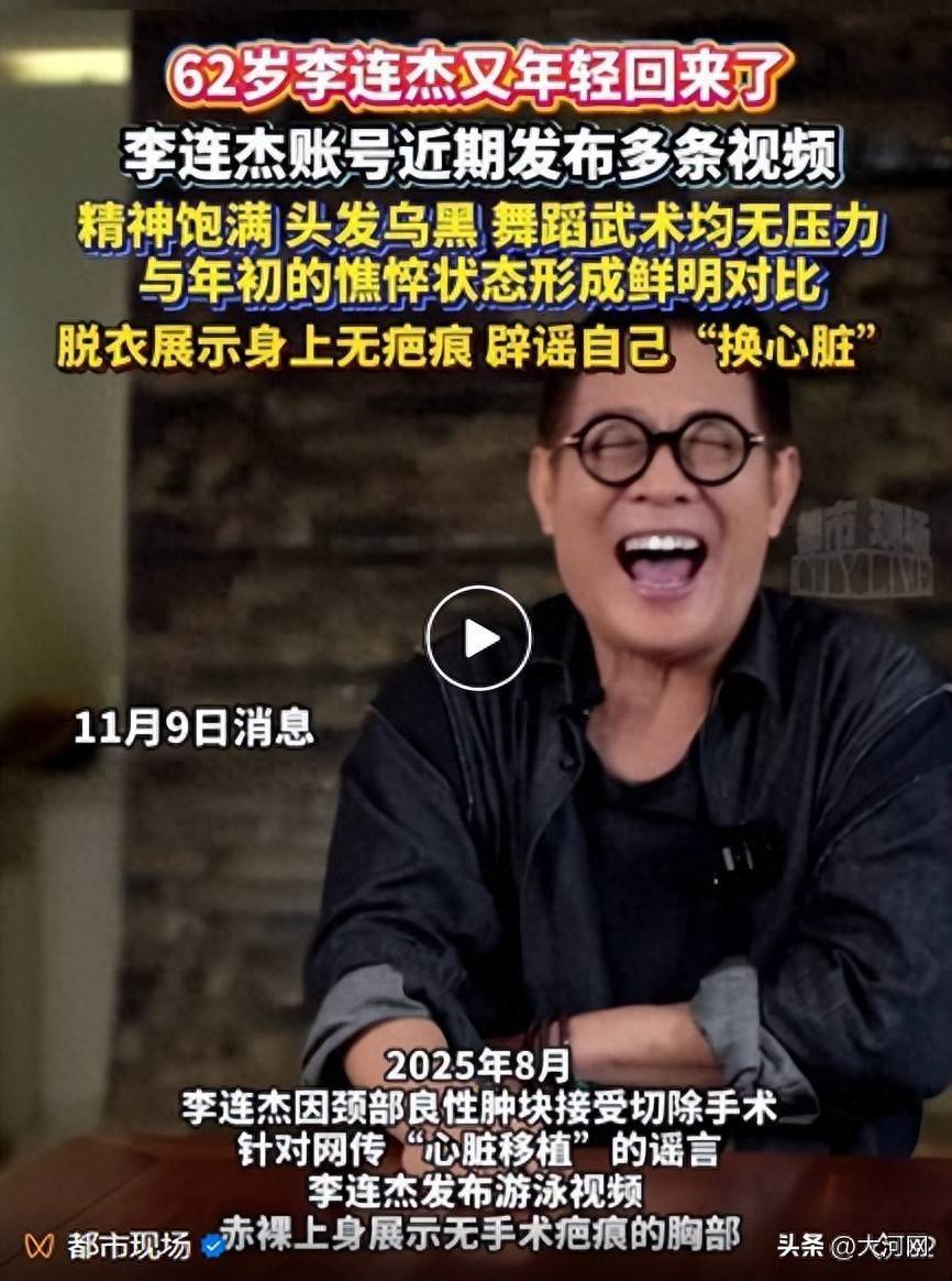 近期,62岁的李连杰在社交账号上发布多条视频,其精神饱满、头发乌黑,舞蹈、武术等均无压力,与年初的憔悴状态形成鲜明对比。