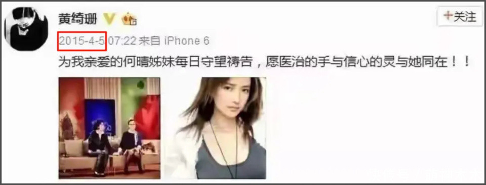 可惜天妒红颜,黄绮珊在2015年的发文让网友得知何晴患病。